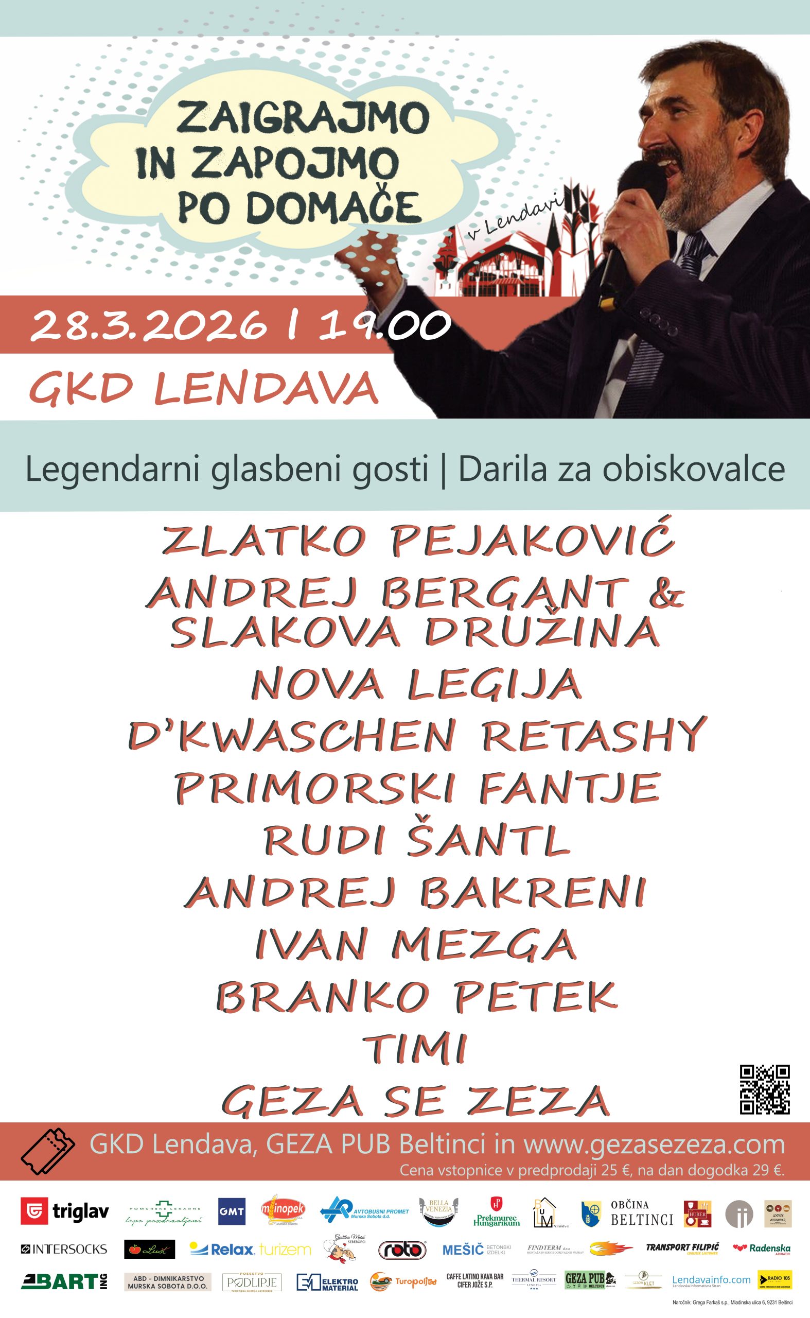 Geza se zeza 12. januarja, 2026 NAPOVEDujemo: ZAIGRAJMO IN ZAPOJMO PO DOMAČE v Lendavi | Gledališka in koncertna dvorana Lendava | 28.3.2026 Novice